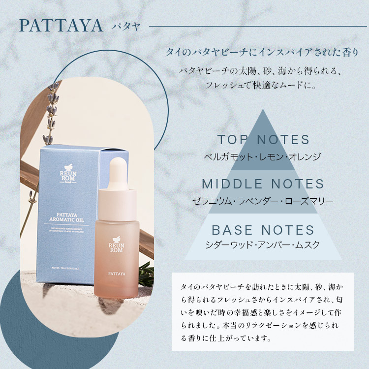 パタヤビーチのフレッシュな太陽・砂・海からインスパイアされた香りです。
